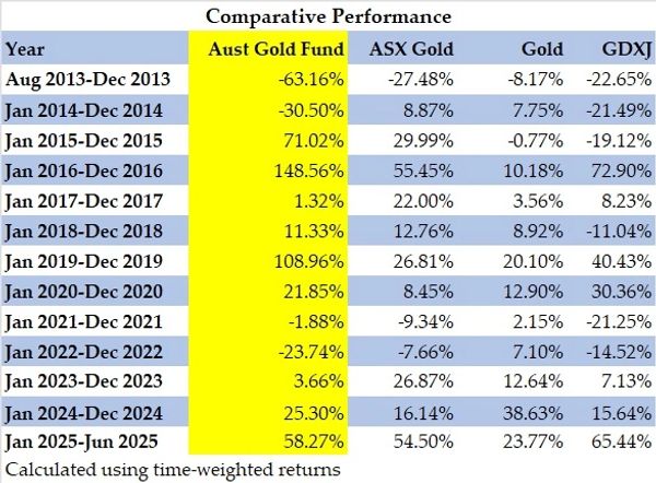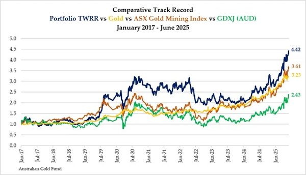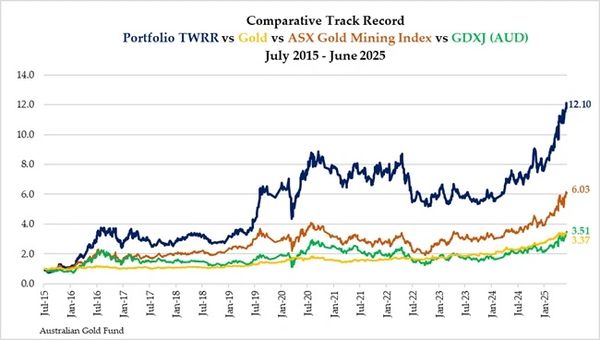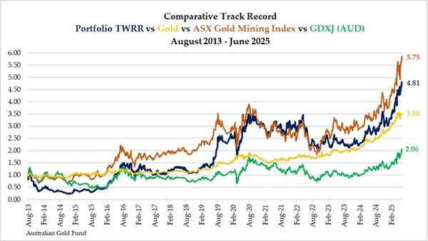 As the results show, despite the deep losses experienced in the first two years of as much as 70% of initial investment, Brian's portfolio is outperforming both the ASX Gold Mining Index and the renowned VanEck's Junior Gold Miners Index (GDXJ) over this period.